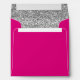 A modern hot pink and faux silver glitter square envelope. Designs are flat printed graphics - NOT ACTUAL GLITTER.