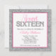 Glam Faux Glitter Silver Pink Sweet 16 Invitation