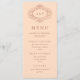 This elegant wedding menu card features a soft blush pink background designed with an ornate, vintage faux rose gold frame. Your initials and the rest of the text appear in a matching rose color.