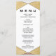 This glam geometric diamond dinner menu card is perfect for a modern wedding. The design features a hexagon geometric pattern with faux gold glitter, faux rose gold foil, and faux marble texture decorating the spaces in the pattern. This menu can be used for a wedding reception, rehearsal dinner, or any event.