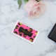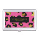 Modern, girly animalier business card case featuring digital image of leopard print in chic Fuchsia pink , black and glitter gold . Black stripe overlay. Great for beauty, fashion , entertainment and event professionals.