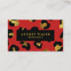 Modern, girly animalier networking card featuring digital image of lepard print in Red, black and glitter gold . Black stripe overlay. Great for beauty, fashion , entertainment and event professionals.