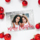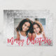 Glam Glitter Silver Red Script Christmas Photo Holiday Card