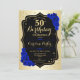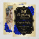 Glam Gold Black Royal Blue Photo 50th Birthday Invitation
