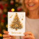 This glamorous party invitation with a gold Christmas tree is perfect for your holiday home party or business gathering. This festive design features a watercolor illustration of a gold Christmas tree with poinsettias. This is a template invitation, so you may edit it any way to fit your needs. Buy as a cardstock invite or as an instant download – the choice is yours. AI design created by Susang6.