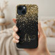 Glam Gold Glitter Elegant Monogram iPhone Case. Easily personalize this trendy chic phone case design featuring elegant gold sparkling glitter on a black background. The design features your handwritten script monogram with pretty swirls and name.