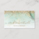 Glam Gold Green Marble Glitter Script Business Card