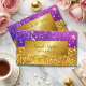 featuring a luxurious gold and purple glitter design with a golden frame. This eye-catching card is perfect for hair and makeup artists, adding a touch of glamour to your brand. The elegant layout includes space for your name and business details making it uniquely yours. Versatile and customizable, this card can also be tailored for other businesses, such as fashion stylists, beauty consultants, or event planners. Make a dazzling first impression with this stylish and sophisticated business card.