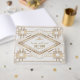 Elegant, vintage card design featuring a faux gold sophisticated art deco style, a royal fleur-de-lis ornament, on a white textured background. Use Customize tool to add your info. For matching items, please, visit my Romantic Gold and White Great Gatsby Collection.