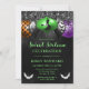 Elegant green, orange, purple and black baubles ornaments with skulls, witch, bats and stripes patters, with dripping glitter and black foil background with silver cobweb corners and bats