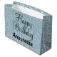 Glam Happy Birthday Blue Silver Glitter Sparkles Large Gift Bag