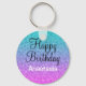 Glam Happy Birthday Ombre Pink Blue Purple Glitter Keychain