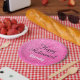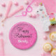 Personalized glam Happy Retirement paper plate with a hot pink glitter sparkle background and black and white writing. You can easily add the name of your choice and change the color and font of the name using the customize option!