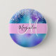 Glam holographic mermaid glitter sparkles monogram name and initial button. Your custom name and monogram are written in an elegant hand lettered script with a light pink background. You can change the text color and font style and size using the customize option.