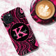 Glam Hot Pink Black Marble Agate Glitter Monogram Case-Mate iPhone Case