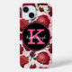 Glam Hot Pink Roses Marble Diamond Monogram Name Case-Mate iPhone Case