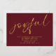 Glam Joyful Script Christmas Party Burgundy Real Foil for Joyful which is in a large modern playful set Calligraphy as is the typography with all the party details. The background color on each side can be changed to another color if preferred via the Edit further option. Easily personalise with your party details.