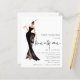 Glam Lady Trendy Script 21st Birthday Party. A budget price SMALLER 4.5” x 5.6” alternative. Available in a SEMI GLOSS 110 lb CARD STOCK which is the default option (recommended for invitations, similar to the thickness of a postcard), OR a SATIN FINISH 80 lb THINNER PAPER STOCK (ideal for enclosures). An illustration of a glamorous lady in black and Twenty one is in a funky set handwriting style script. Easily personalise the rest of the text to your own details.