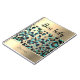 Blue and black leopard dots on a shimmery gold backdrop with a gold pearl necklace border where above is a gold shiny edge where you can personalize it with a name, phrase or logo or you can keep it as is with the words "Boss Lady". Chic glam leopard theme.