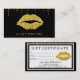 A glitter and glam makeup artist gift certificate business cards signed with a kiss. This design is perfect for Hair Stylists, Makeup Artist, Beauticians, Cosmeticians, Makeovers, SPA, Salon and more. If you need any customization or matching items, please feel free to contact me. AmeliaCarrie@Gmail.com - GlitterBusinessCards.com