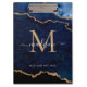 Glam Navy Blue Gold Glitter Agate Geode Monogram Clipboard