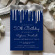 Glam Navy Blue Silver Dripping Foil 50th Birthday Invitation