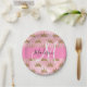 Glam Pink & Gold Glitter Sparkles Crowns Monogram Paper Plates