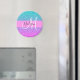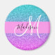 Glam Purple Aqua Glitter Sparkle Gradient Monogram Magnet