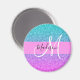 Girly and glam purple, lilac, aqua and turquoise mermaid glitter sparkles gradient monogram name and initial magnet. Your custom name and monogram are written in an elegant hand lettered script with a pink background. A perfect birthday or Christmas gift!