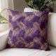 Glam Purple Foil Gold Black Tropical Palm Pattern Throw Pillow
