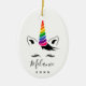 The Glam Rainbow Unicorn Ceramic Ornament designed by Enchantfancy Design Company features the outline of a unicorn's face complete with glamorous eyelashes, ears, a tuft of hair and a fabulous bright rainbow unicorn horn. Personalize with your choice of name and year! Perfect for the unicorn lover in your life.