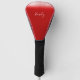 This modern glamorous golf club head cover is designed to impress. Trendy faux shimmer lights on a red background with a modern script font.