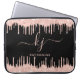 Girly, Elegant, Sylish, Light Rose Gold Glitter Drips 2 Monogram Script custom personalized name monogrammed laptop sleeve on black. Featuring a modern luxury faux light pink rose gold glitter dripping frame, a large double (2) hand lettered monogram script font with swashes (in large size initials), and a serif type font name in light pink on black background. Easy to personalize it. Great feminine girly gift for girlfriend, mother, birthday, sweet 16 birthday party, bridal shower, business, home office, professional work and for anyone who like pretty glamourous shiny things.