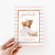 Affordable custom printed magnetic graduation photo announcements. This chic design features a faux rose gold foil border and blush pink watercolor stripe background. Personalize it with your senior photo and announcement info or other custom text. Use the design tools to add more photos, customize the text, fonts and colors to create a unique and stylish graduation announcement magnet.