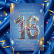 Royal Blue and Gold Glitter Balloon Sweet 16Designed by Kristina Lj Petrovska