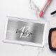 Glam Silver Brushed Metal Black White Monogram Business Card Case