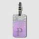 Modern Glam Silver Glitter Drips Girly Feminine Luxury Monogram Script Name Luggage Tag