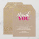 GLAM THANK YOU rustic gold confetti pink kraft Card