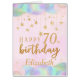 A glamorous Happy 70th birthday age card. This beautiful jumbo sized Glam card features gold stars and pastel iridescent balloons. The large card gives plenty of room for family, friends and work colleagues to sign inside with their own messages. Can be customize for any age and personalized by amending the name and the message inside which currently reads " Happy Birthday, Wishing you a fun-filled fabulous 70th!."