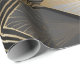 The striking contrast between the metallic hues and the deep black background creates a dramatic visual impact, reminiscent of the lavish decor that defined the Gatsby era. The precision of the geometric shapes enhances this sense of grandeur, with each angle and line meticulously placed to reflect light and create depth.