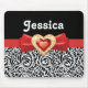 Glamorous Black white damask & red bow and jewel Mouse Pad