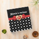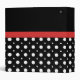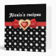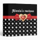 Glamorous black white polka dot pattern with red bow and jewel personalized template recipe binder design that features a black and white pattern with white dots on black background and a red ribbon across it with a bow and a heart shaped jewel also in red with gold outline and strass which adds a little bling. Note the bow and the heart diamond jewelry is a "printed on" illustration and not a real crystal, so are the strass. A glamorous, elegant and stylish feminine design trendy, fashionable and modern at the same time.