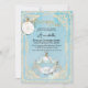 This romantic, magical and enchanting custom party invitation features a glamorous Cinderella fairytale theme. The background features a soft teal or baby blue marble pattern. A luxurious, vintage style gold glitter frame borders the invitation. A pumpkin style Cinderella princess carriage is placed at the bottom, with two little pumpkins next to it. A golden clock is placed in the top left next to the iconic fairytale phrase, "Once upon a time."