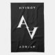 Glamorous double name monogram black and white kitchen towel gift for him or her. Elegant typography template with back to back initial letters. Create your own personalized presents for men and women. Classy presents for Birthday, Father's day and more. Also great for wedding party.