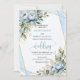 Glamorous Dusty Blue Gold Floral Wedding Invite