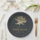 GLAMOROUS GOLD BLACK LOTUS FLORAL BRIDAL SHOWER PAPER PLATES