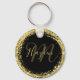 Glamorous Gold Glitter Monogram Name Black Keychain