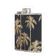Glamorous Gold Tropical Palm Trees on Black Hip Flask