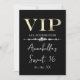 This custom party invitation features glamorous VIP design on a black background. The VIP title is printed in a gold foil style font, followed by the event title. A band of diamonds separates the text. The party or event location and time are printed on the back. It's perfect for a birthday party, sweet 16, bridal shower, or other elegant celebration.