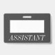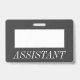 This glamorous and classy badge design features the message "ASSISTANT". A badge like this could possibly be worn to identify that somebody is an official volunteer or assistant at an event.